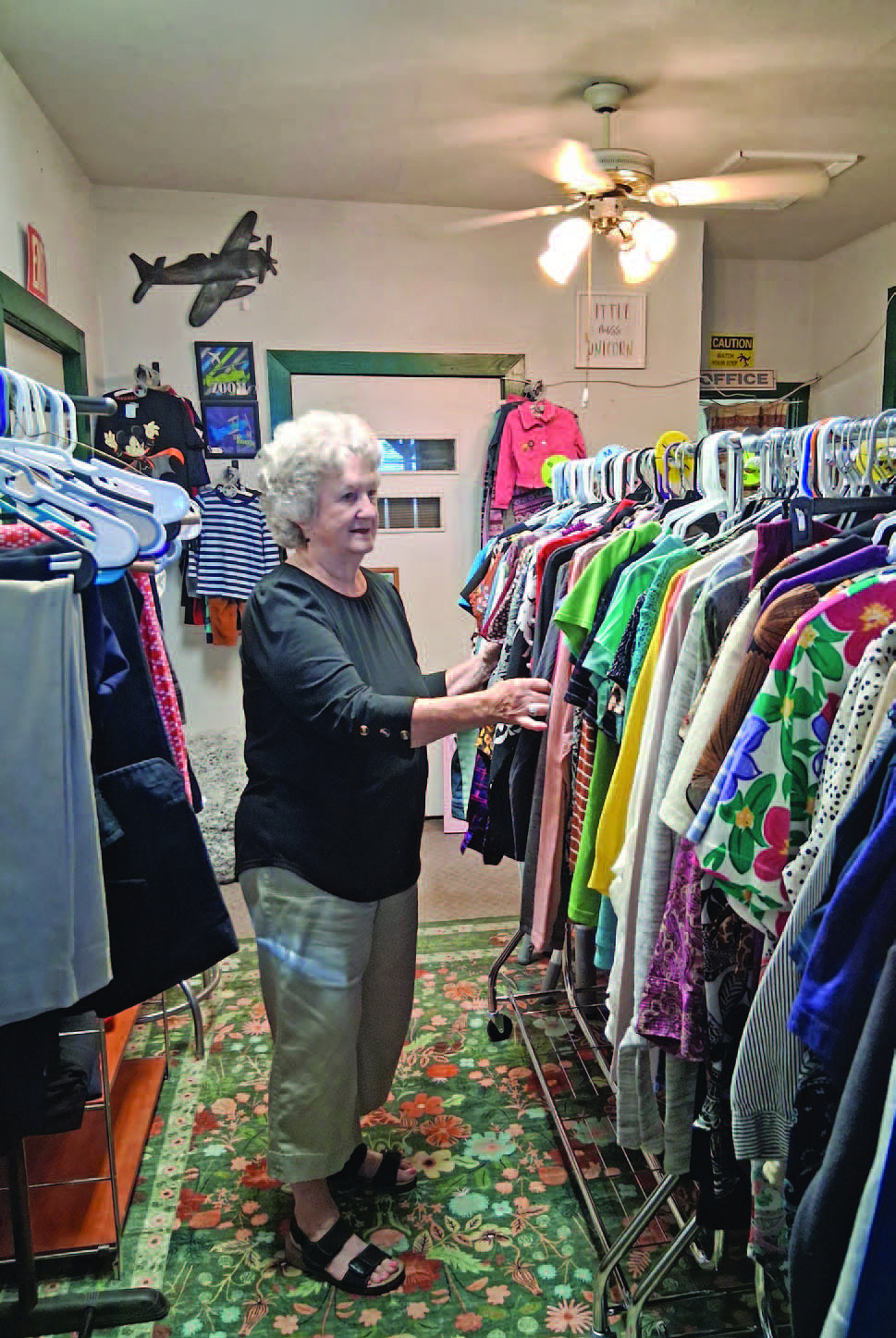 This week, Patsy is back at her former store, launching “Ruffles to Wranglers Family Clothing” in the back room of Second-Hand Treasures.