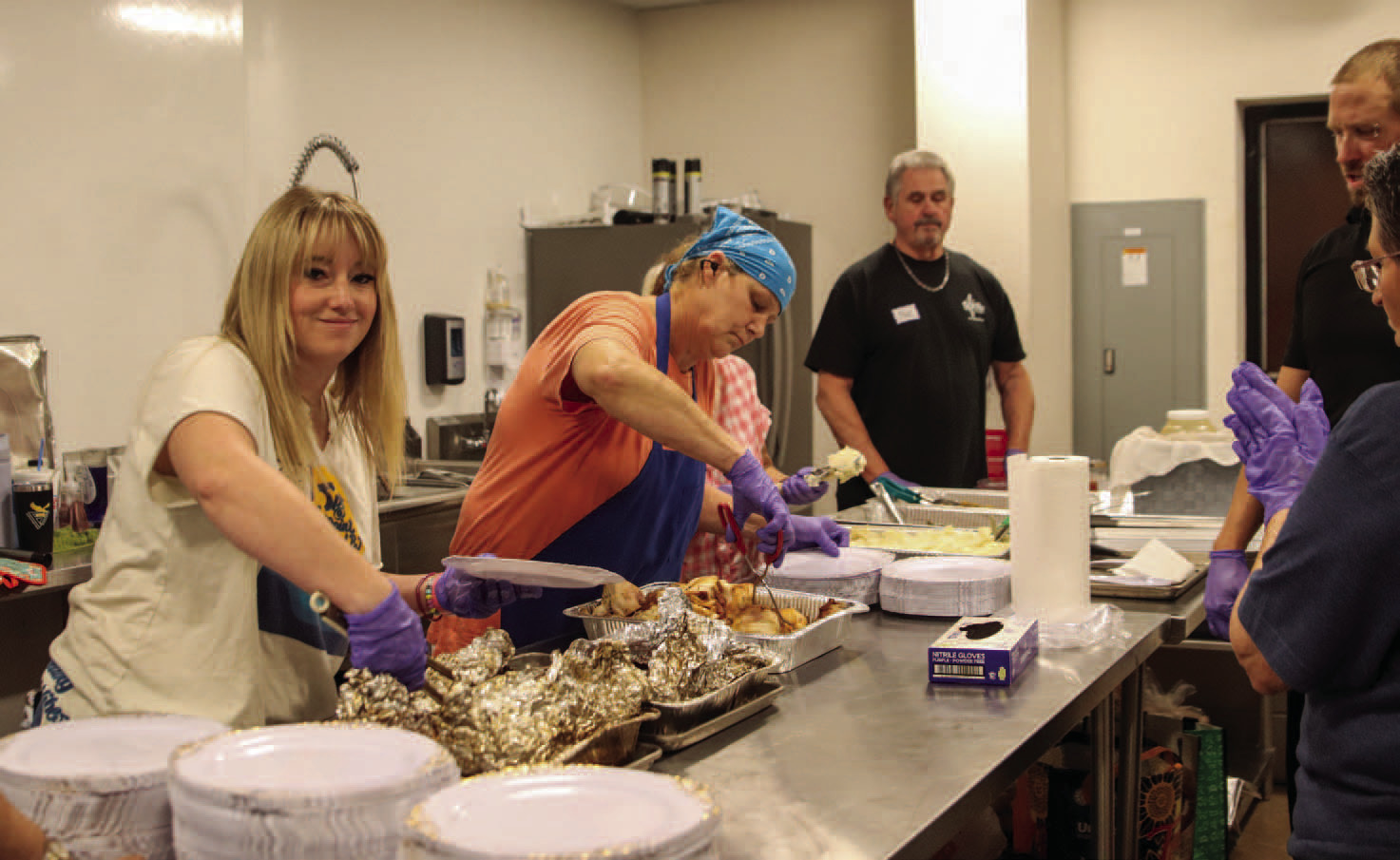 Some served plates of turkey and trimmings, others filled to-go orders, delivered meals to neighbors unable to attend, or guided guests from the parking lot.