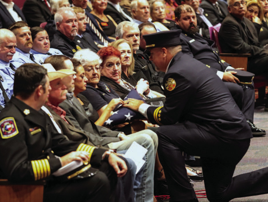The widow, Cecelia Phillips, family and other loved ones were presented with a ceremonial flag in honor of the late Marble Falls Area Fire Chief Michael Phillips.