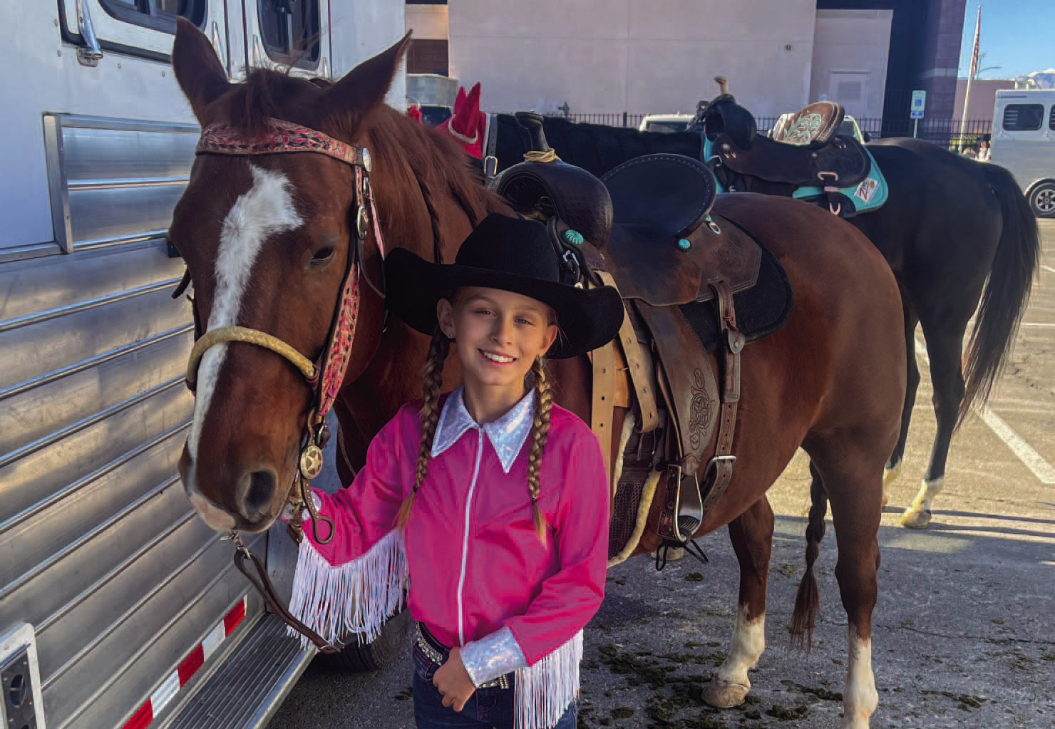 Haven Huffstuttler, 11, a sixth-grader at Burnet Middle School, has been riding for about three years un- der the coaching of Eddie Shell. She qualified for the Junior NFR by earning enough points throughout the season, officially clinching her spot at the final qualifying rodeo on August 31, in Waco, Texas.