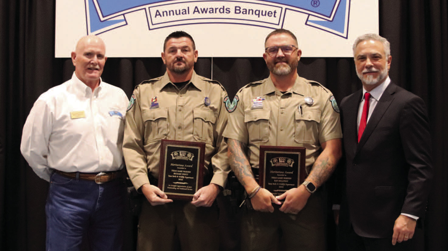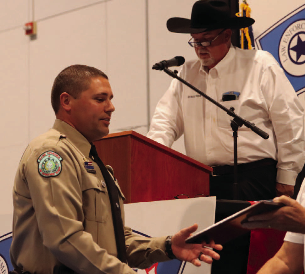 Texas Parks and Wildlife Game Warden Braxton Harris was honored for rescuing an injured man below Max Starke Dam in Marble Falls. Using his familiarity with the remote area and coordinating with local landowners, Harris located a man who had fallen from a cliff and was suffering from hypothermia. Harris helped guide EMS crews to the scene and assisted in transporting the victim across the lake to waiting medical personnel.