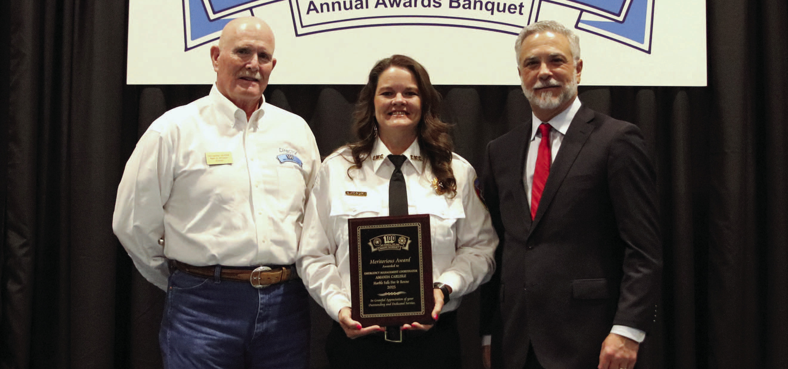 Emergency Management Coordinator Amanda Carlisle of the City of Marble Falls was recognized for her leadership during the July 2025 flooding that impacted Burnet County. After monitoring rapidly escalating conditions, Carlisle reported to the Marble Falls Police Department and began coordinating response operations, securing air support resources and establishing communication among responding agencies. When Marble Falls assumed responsibility for response operations on the south end of the county, Carlisle coordinated staffing, resources, and situational awareness during the prolonged emergency response.